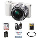 Alpha a5100 Mirrorless Digital Camera with 16-50mm Lens Deluxe Kit (White) Comprised of the essentials needed to begin shooting, the white Sony Alpha a5100 Mirrorless Digital Camera with 16-50mm Lens Deluxe Kit from B&H bundles the mirrorless body and versatile zoom with a 40.5mm UV protect filter and an external battery charger. Additionally, an extended two-year drops and spills warranty is also included for further protection of your equipment. Pairing a 2 ... View Details » |