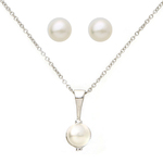 White Pearl Necklace & Earring Set White pearls are a jewel that complement every moodTimeless jewels go with any outfit day or nightClassic 7mm white button pearlsPearls are set in sterling silverNecklace is an 18â long cable chainEarrings are for pierced ears onlyPearls are farmed in freshwaterSterling silver features an e-coat to help prevent tarnishShips in a purple Jilco gift box or pouch with protective tissue paper and ribbon ... View Details » |