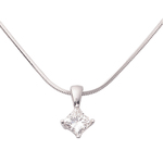 White Gold .50ct Diamond Necklace The diamond - the representation of a guiding light on your personal journeyTimless cut and shape this piece will continue to work with any look over timeClassic yet contemporary .50ct princess cut diamond pendantDiamond is set in 14k white gold with a polished finishSnake chain measures 18â longCarat weight (ct) refers to the size of the diamondShips in a Jilco purple gift box with tissue paper and decorative ribbon ... View Details » |