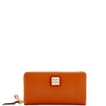 Pebble Grain Large Zip Around Wristlet The rich texture and exceptional durability of Dooney's pebble grain leather make it a perfect match for this phone wristlet. With organized space for a cell phone, cash and cards, it is a stylish accessory for a woman on the go. Features include two compartments, one zip compartment, twelve credit card slots, lined, and has a detachable strap. Measures H 4.5 in x W 8.25 in x D 1 in. Color: Caramel ... View Details » |