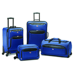 Brookfield 4pc Luggage Set Navy Blue Lightweight and durable 600D polyester material4-Multidirectional spinner wheelsMultiple interior and exterior organization pocketsPush-button locking handleSmartSleeve on tote for easy travelBoarding bag: 15â x 10â x 6.5âWheeled duffel: 23â x 12â x 11.5â21â Spinner: 20.5â x 14.5â x 8â25â Spinner: 25â x 18â x 10â ... View Details » |