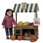 The Queen's Treasures Complete 18 Inch Doll Wooden Farmstand with Fruit, Veggies, Crates & Doll Outf...