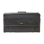 Emma RFID Tab Clutch Black Designed in smooth glazed leather Emma's roomy interior with plenty of pockets make it your go-to clutch. Fossil designed this clutch with a special lining to help protect the Radio Frequency Identification (RFID) chips in your credit and debit cards from unwarranted scanning.Offers Radio Frequency Identification protectionMade of high-quality leather that lasts over timeExterior has a back zipper pocketClutch fold over tab with snap closureInte ... View Details » |