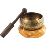 Singing Bowl Use for meditation and healingGreat for yoga practice and spa treatmentsPart of the process to uphold the traditions of the sixth ChakraTo play place bowl on cushion and slide the striker around the rimMade of hand-hammered brass with minuscule amounts of seven auspicious metalsHandmade gold resting cuhionWood strikerDimensions: 3.5âW x 1.5âHMade in Nepal ... View Details » |