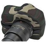 Your BodyGuard Pro Camera Cover is designed to carry a pro DSLR camera body with lens attached. The neoprene covering helps reduce shutter noise. It will also accommodate a prosumer body with an optional body grip installed. This classic forest green camouflage pattern is ideal for general use in wooded areas