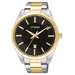 Mens Quartz Two-Tone Stainless Steel Watch Black Dial